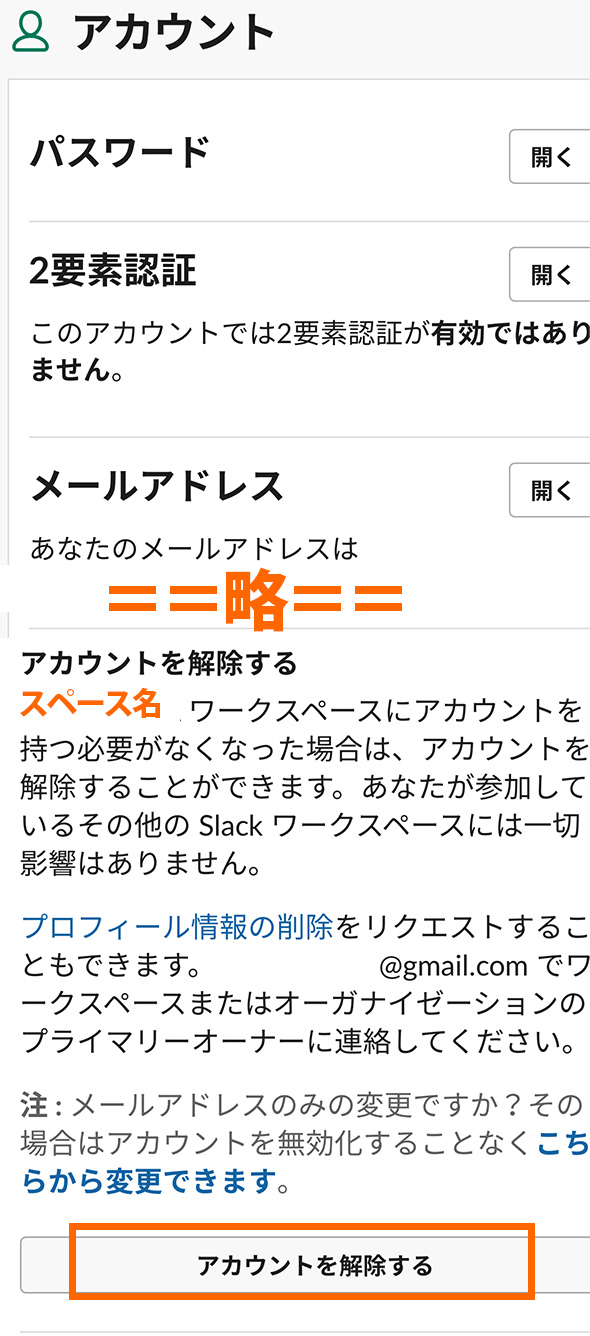 なので「このワークスペースだけ抜けたい」ときは、アカウントを削除する必要はなく、そのワークスペースを”解除”するだけでOKです。