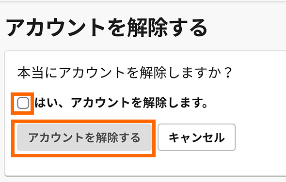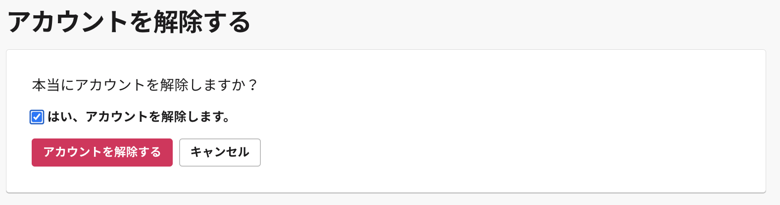再確認画面が表示されたら「はい、アカウントを解除します」にチェックを入れ、「アカウントを解除する」をクリックします。